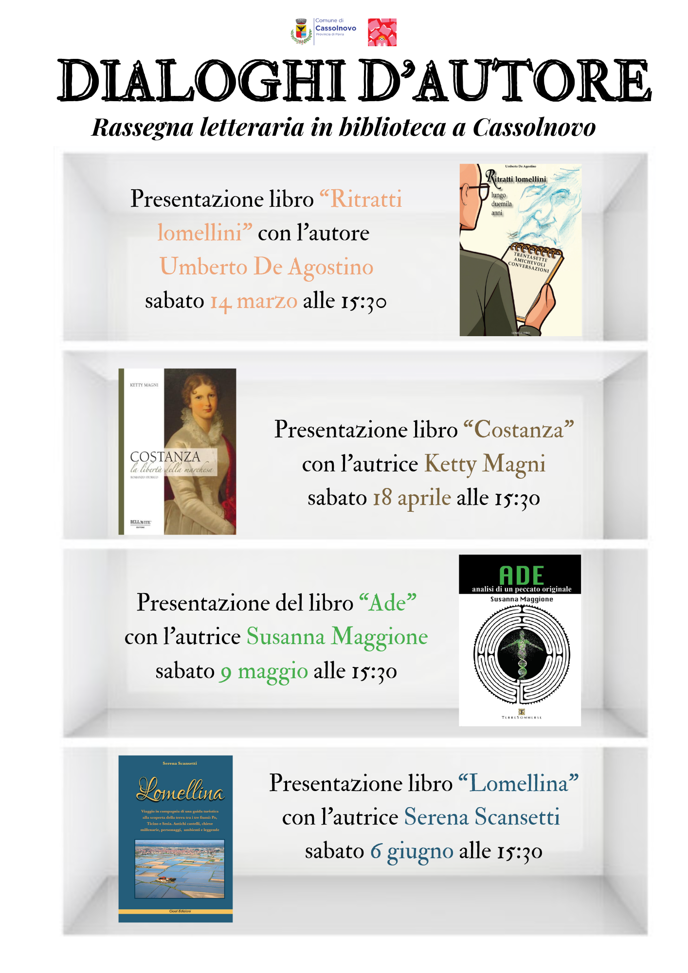 La Biblioteca Comunale di Cassolnovo ospita la rassegna letteraria “Dialoghi d’Autore”, un ciclo di incontri dedicati alla presentazione di libri e al dialogo diretto con gli autori.