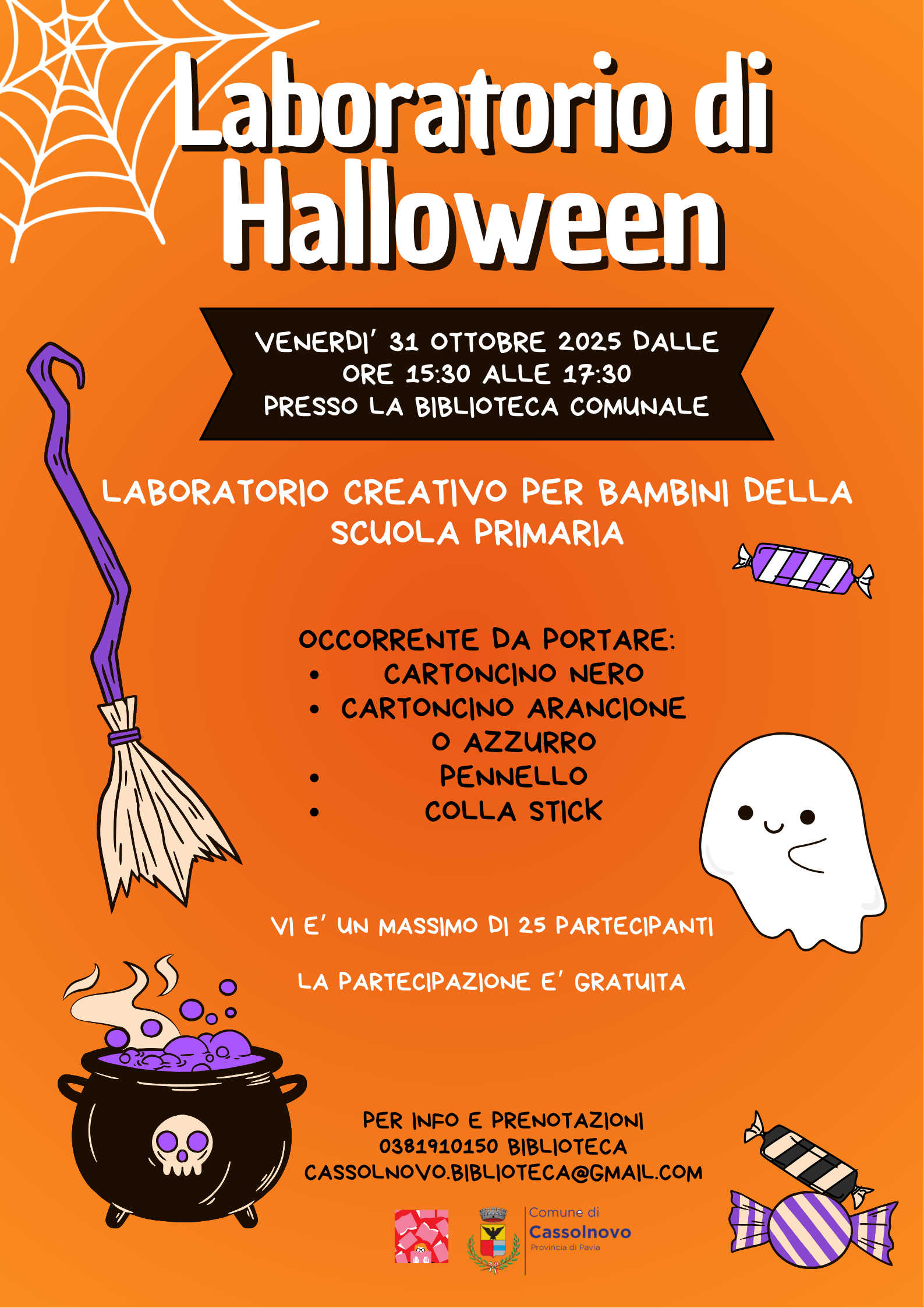 Venerdì 31 ottobre 2025 dalle ore 15:30 alle 17:30 presso la Biblioteca Comunale.